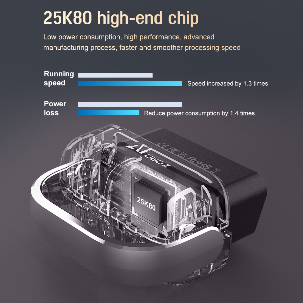 Main functions of this OBD2 scanner:AI free search and diagnostic assistance, carbon buildup test, air flow test, fuel trim test, mode 6/mode 8, engine fault diagnosis, fault code inquiry, MIL reset function, oxygen sensor testing, freeze frame Data, dual-brand bluetooth 5.4, vehicle travel analysis, reading vehicle information, performance testing, real-time data stream, built-in 35901 fault code library, car battery voltage reading, monitoring and testing.