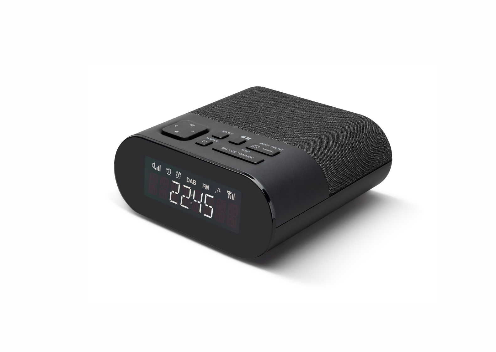 Alarm clock with two alarms and three ring tones: BUZZER / FM / DAB