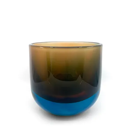Subtle and sophisticated, this piece blends earthy amber with watery blue tones.