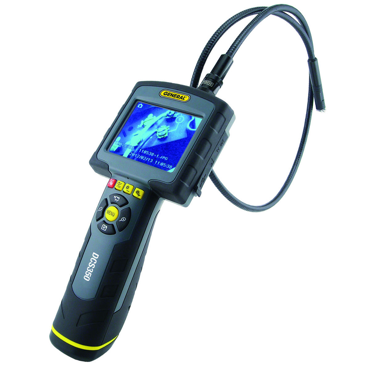 Includes long (1m/39 in.), thin (12mm/0.47 in.) diameter, flexible-obedient camera-tipped probe for looking deep into tight spaces.