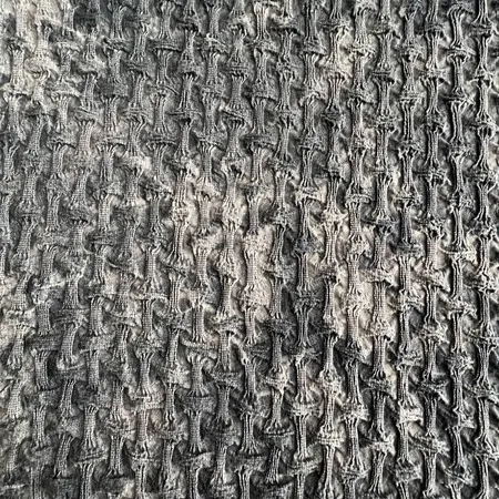 This natural 100% cotton denim is washed and boiled to create a special color transition. Each meter of the fabric is decorated with a complex 3D embroidery, made using advanced technology, which gives it a refined and luxurious look. The material is pleasant to the touch, breathable and suitable for creating different types of products;