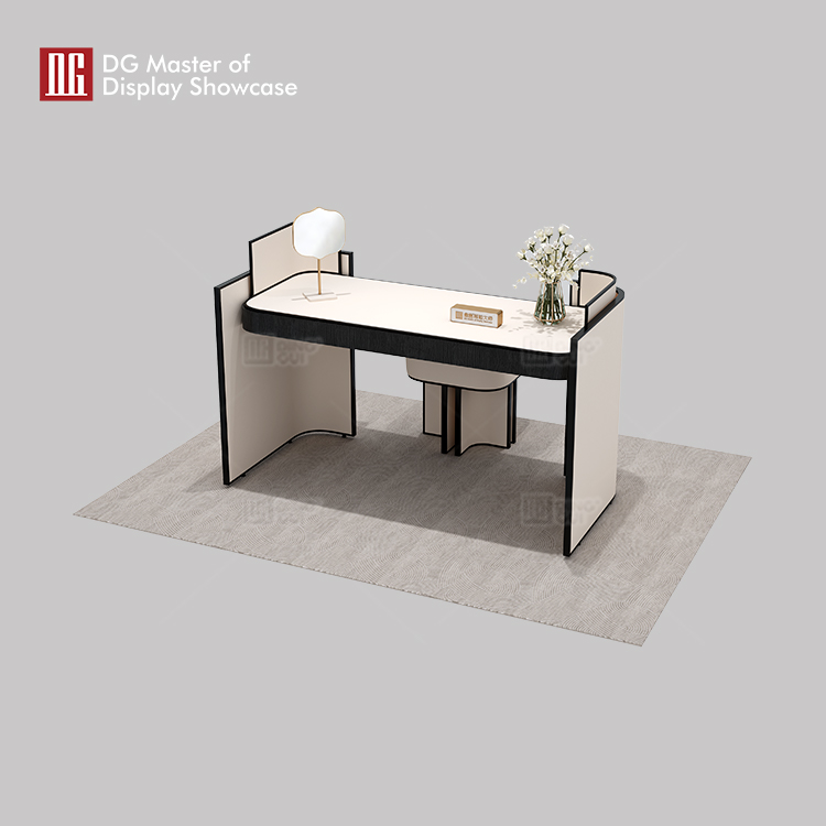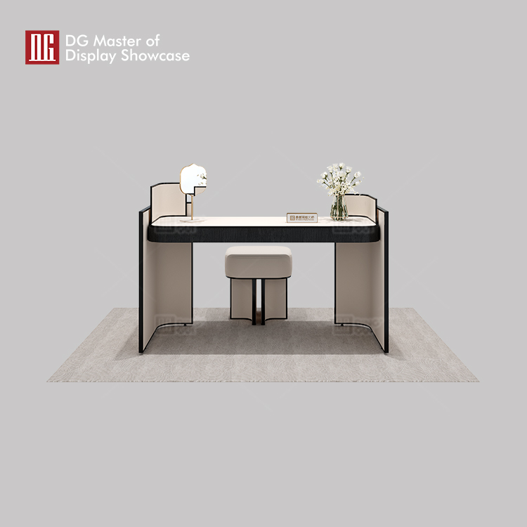 The newly designed DG modern luxury minimalist jewelry and watch experience table is specifically crafted to provide a prestigious and professional display platform for your precious exhibits. This experience table features a smooth and elegant rectangular design, showcasing the perfect combination of simplicity and luxury. The tabletop is made of high-quality leather, offering a delicate touch and radiating a captivating sheen under warm lighting, perfectly highlighting the brilliance and beauty of the jewelry.In terms of color coordination, we have chosen a classic black-and-white palette that not only aligns with modern aesthetics but also creates a professional and tranquil atmosphere. The matching small stool reflects meticulous craftsmanship in both color and detail. The DG jewelry experience table not only boasts an outstanding appearance but also excels in practicality. It is meticulously designed to fully showcase every detail of the jewelry, allowing customers to deeply appreciate its unique charm. At the same time, the spacious tabletop provides ample working space for sales personnel, making each transaction smoother and more efficient. Whether in high-end jewelry and watch boutiques, upscale mall jewelry counters, or professional jewelry exhibition halls, the DG jewelry experience table can become a stunning focal point. It not only enhances the presentation of the jewelry but also underscores the brand’s professionalism and prestige. Choose the DG jewelry experience table, and let your jewelry shine with the brightest brilliance at every display! If you are interested in this jewelry and watch experience table, feel free to contact DG at any time!