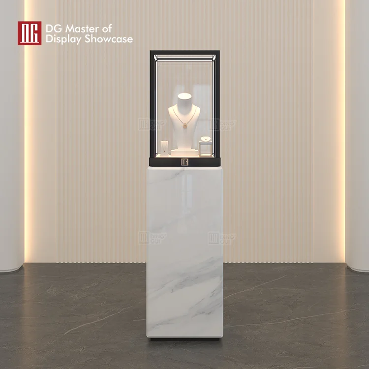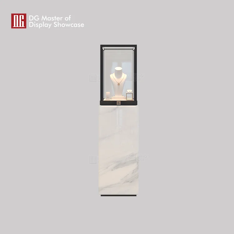 This custom luxury showcase is DG display Showcase's 2024 luxury jewelry showcase.It can be applied to luxury jewelry stores, watch stores, luxury stores and other high-end places.The novel design concept is unprecedented and can quickly attract customers' attention.The excellent marble material enhances the design sense and aesthetic degree of this exhibition case.The intelligent opening mode of electronic lock provides you with convenient opening mode and safe mode.Intelligent adjustable lighting system can meet the diverse needs of customers.At the same time, we can provide one-stop service for jewelry display cases, including design, manufacture and installation.If you also like this jewelry showcase, welcome to contact DG Master of display showcase.