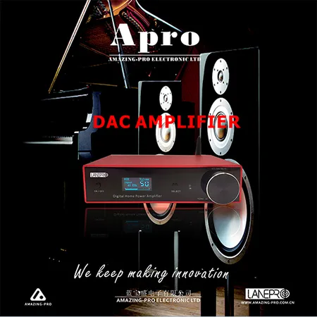 The latest DAC stereo amplifier is a high-performance audio device that comes with a full-function remote control, an aluminum case, and both Bluetooth and USB interfaces. This amplifier is designed to deliver a powerful and clear sound, making it perfect for use in home theaters, music rooms, and other audio setups.