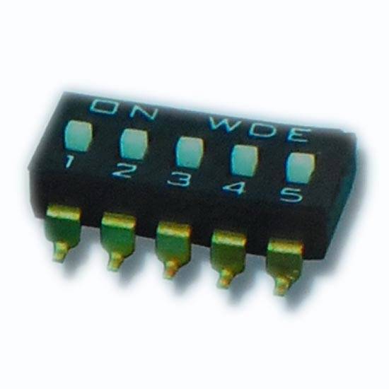 The DIP switch is equipped with sturdy hooks, allowing it to be easily mounted on printed circuit boards. With the feature of an ultra-long mechanical life, it is applicable to a variety of electronic devices.