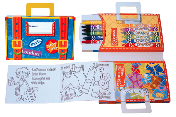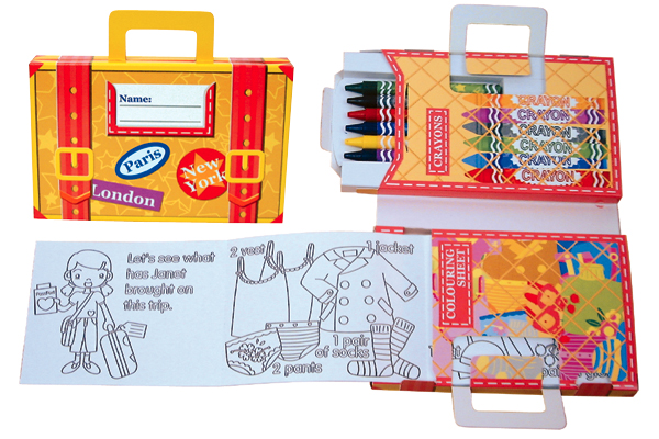 This is a coloring book set with a baggage design. The vivid colors will surely stimulate your children's visual development. The durable handle allows your kid to carry the coloring set around with ease.