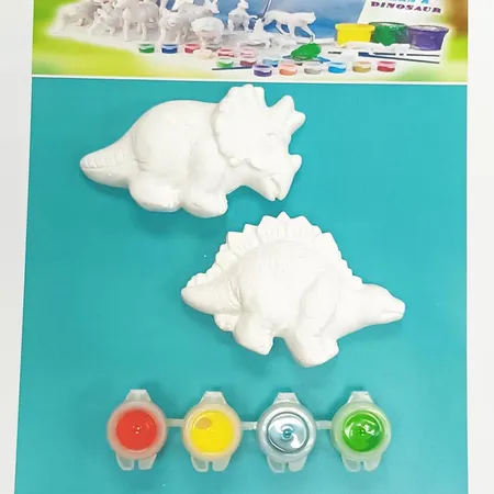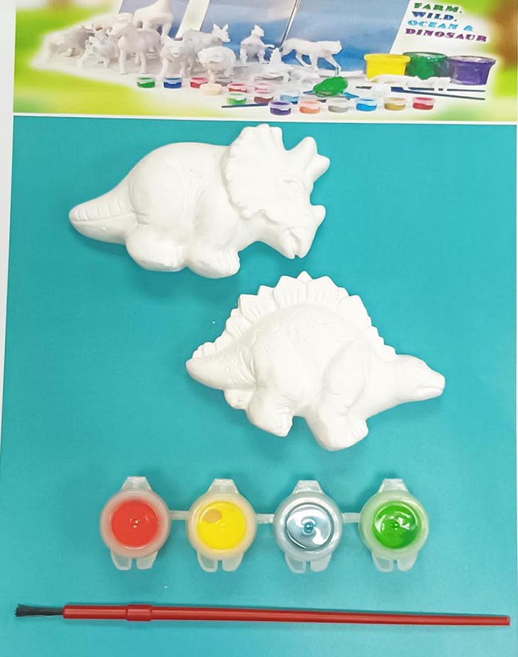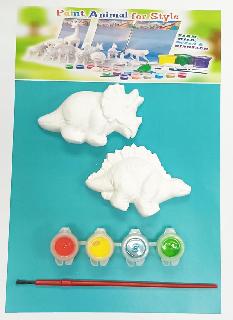 2 PCS DINOSAUR POLYSTONE MATERIAL ; WITH 4 COLOR PAINT WITH PAINT PEN IN BLISTER CARD; WE ALSO HAVE DIFFERENT STYLE , OEM PROJECT , WELCOME