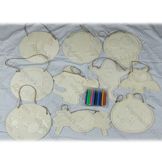 This is a DIY door hanger coming with a Halloween theme. The door hanger comes with the shapes of a ghost, spider, skull, bat, pumpkin, and more. It allows children to color the door hanger by their imagination.