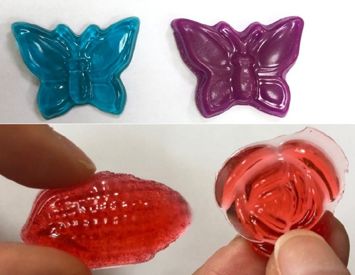 FILLING INTO MOULDS TO SHAPE. LET'S COOL DOWN TO COMPLETE CLEAR CRYSTAL CLINGS.