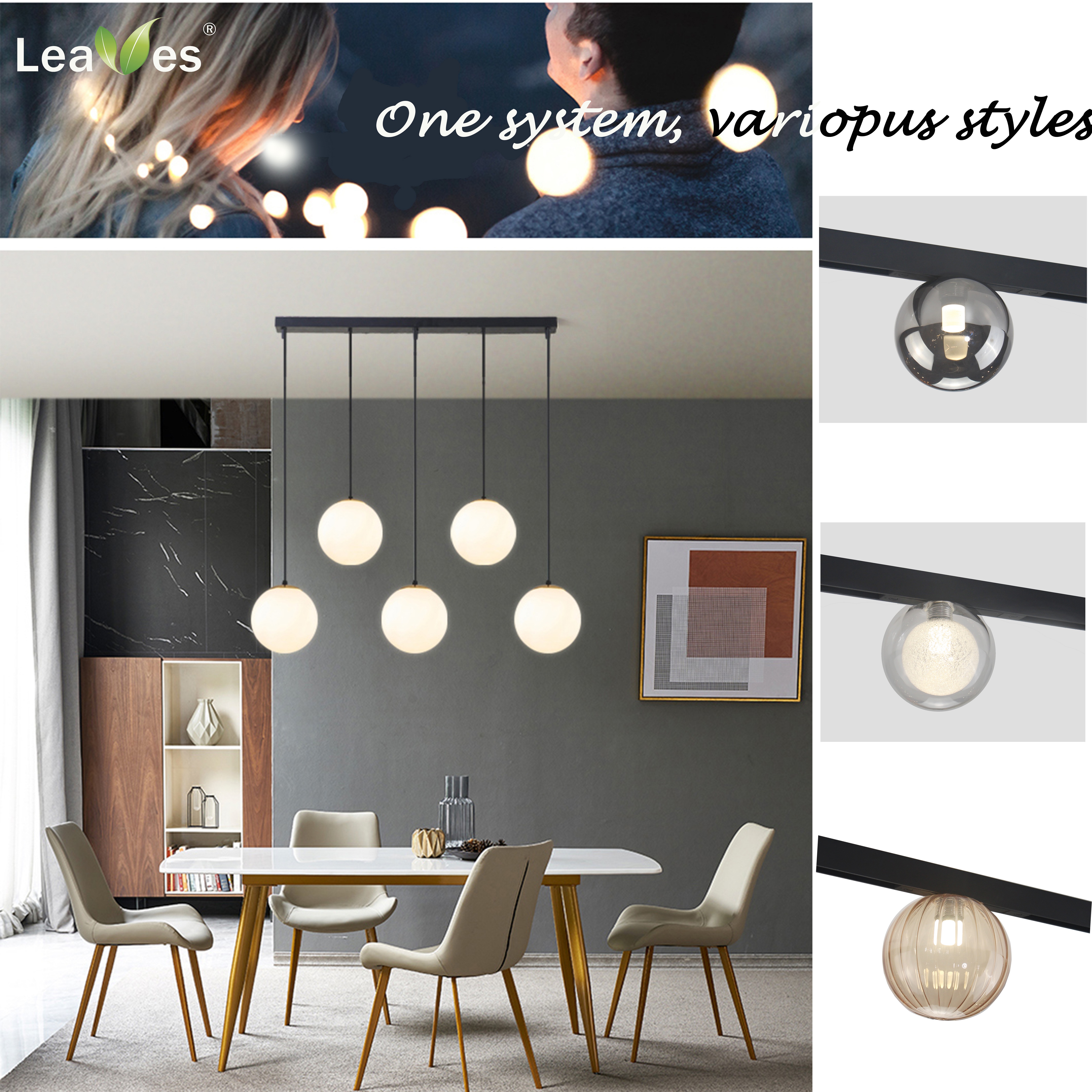 The new designed of exclusive products Leaves LMT track system adopts wires to seamlessly connect the track, and the track can be combined with spotlights, wall washers, linear lights, single chandelier and other lamps.
