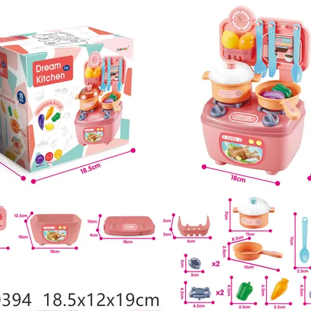 • DIY tableware table: fruit, vegetables, pot, knife and fork, spoon, pot, gas stove,