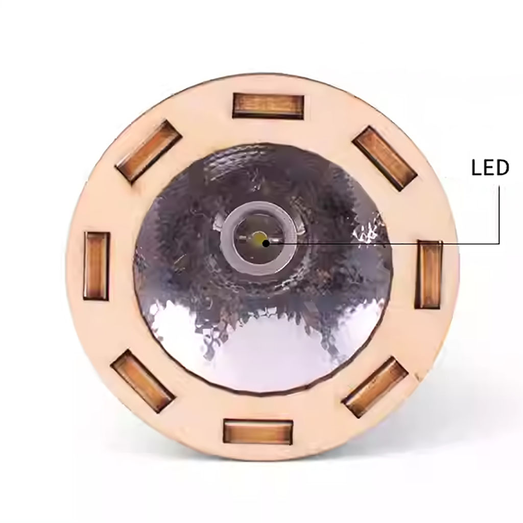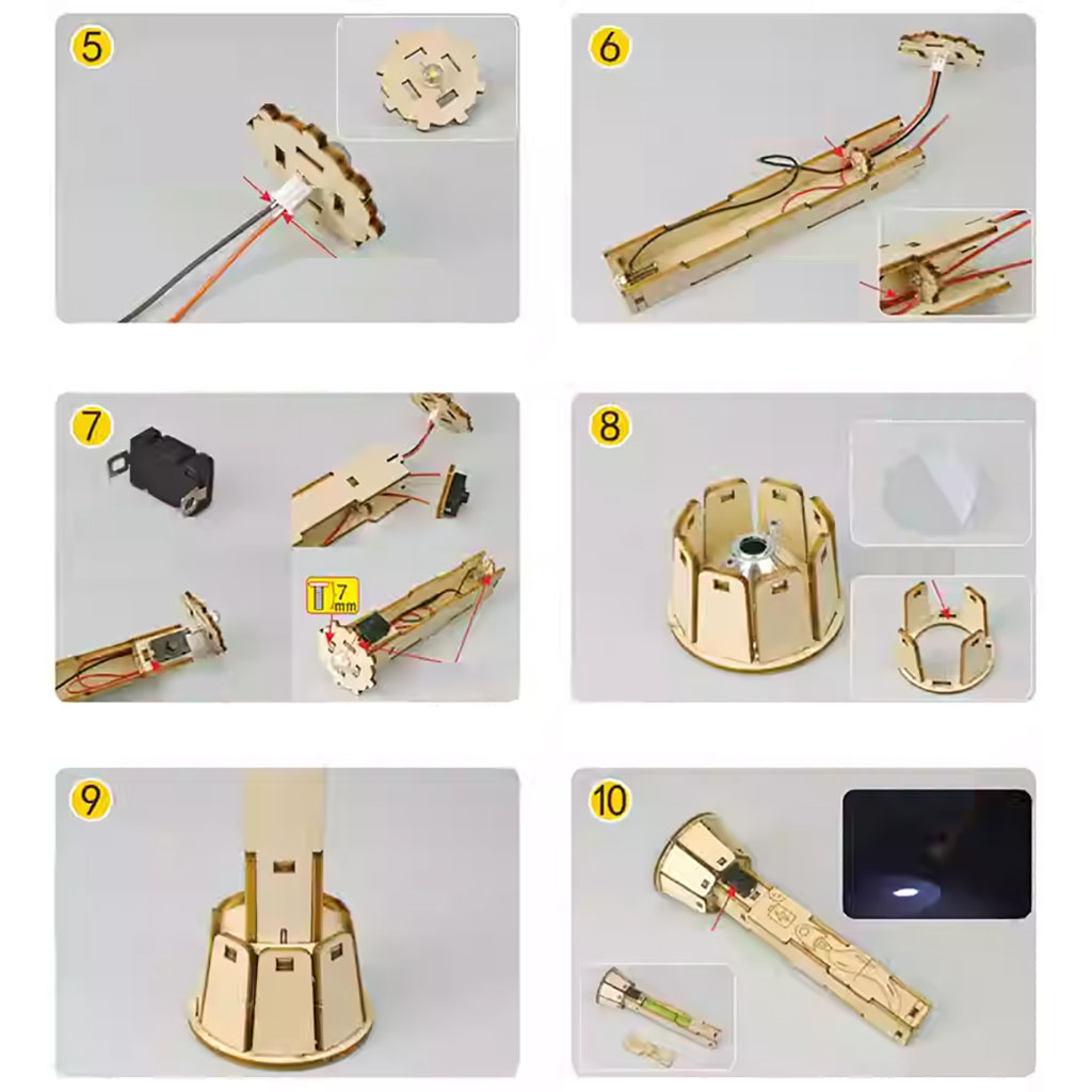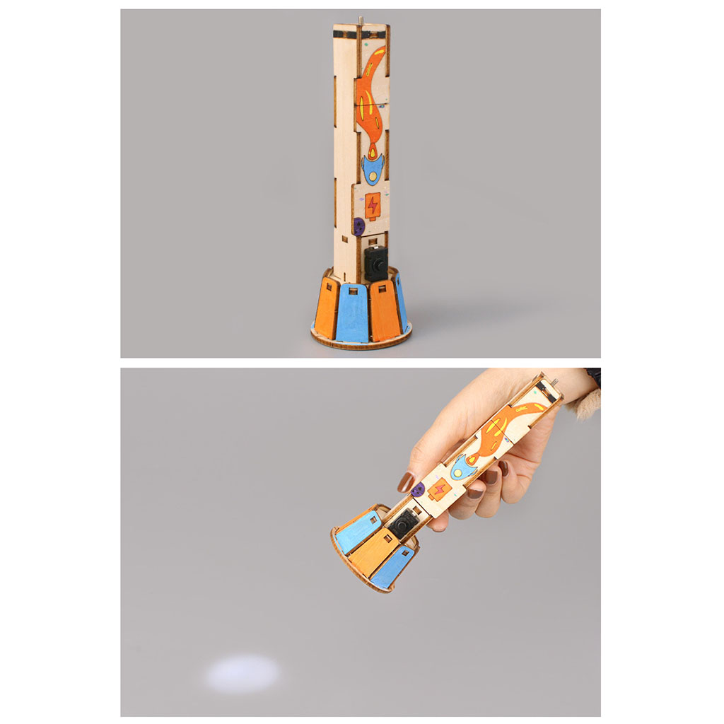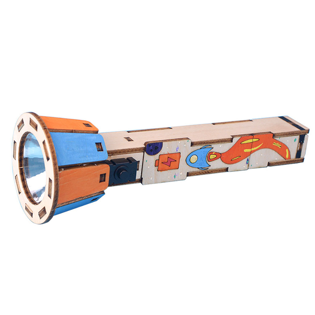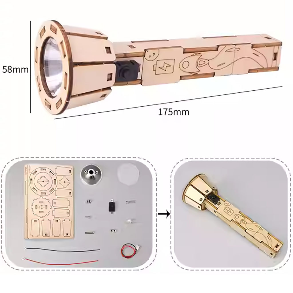 Learn simple circuit knowledge - use dry batteries as energy and LED lamp beads that can emit light to form an electrical circuit, coupled with a focusing reflector. When the switch is turned on, the circuit is connected, and current flows through the LED lamp beads, causing the LED to glow and achieve lighting purposes