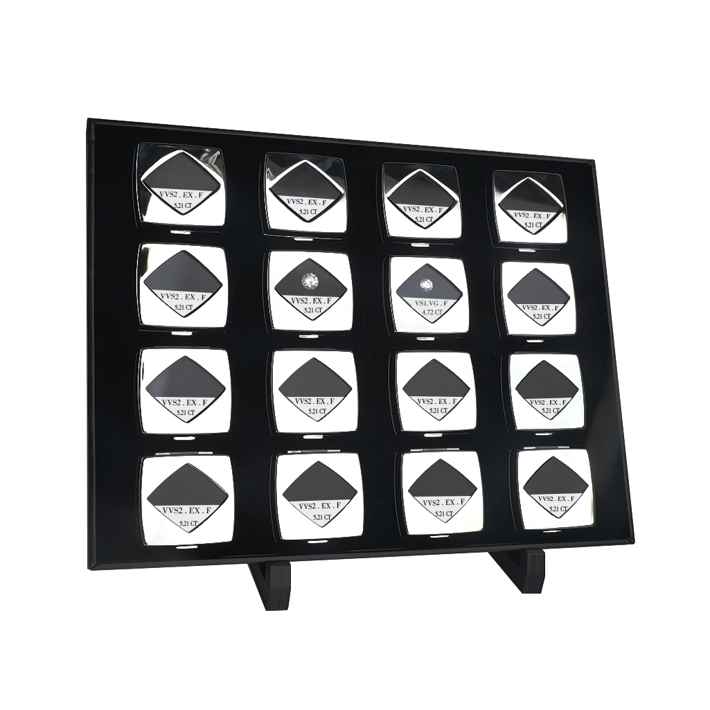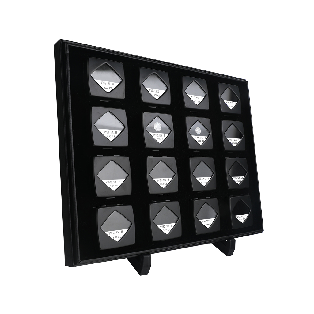 We have a large range of Diamond Trays, diamond boxes, and diamond display stands. All made from high quality materials and in a professional finish. We can also make any tray, box or stand exactly to your specified requirements, in any colour or material Just e-mail and let us know what you need! Optional stand also available, stands can also be made exactly to your specifications to hold one or more boxes as you require.
