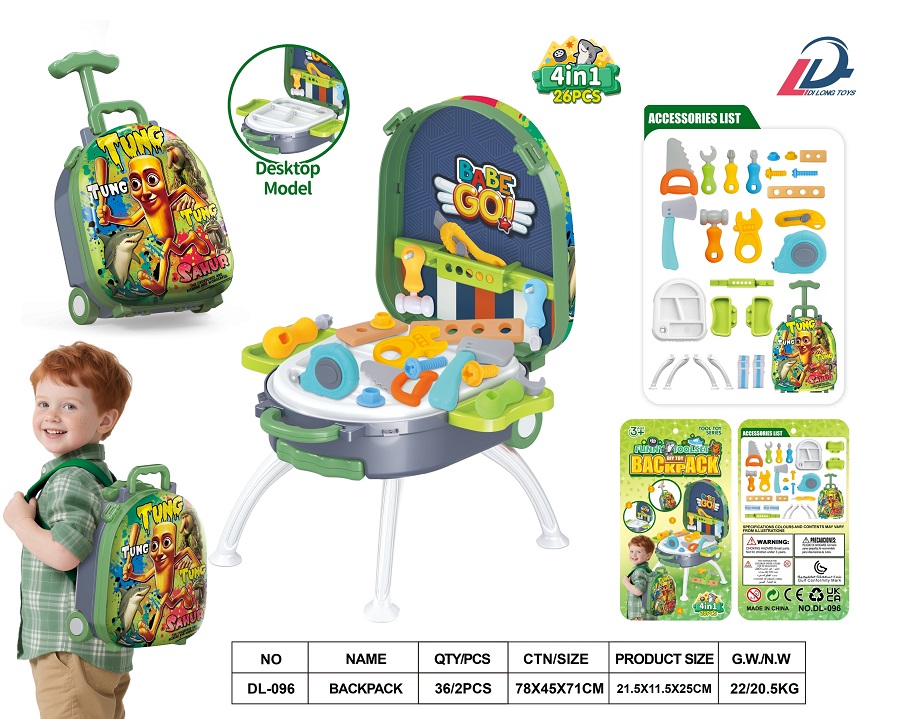DL-096 SHAN HAI JING 4-IN-1 PULL-ALONG SUITCASE PRETEND PLAY TOOL ALLOY BACKPACK SET (FOR BOYS)