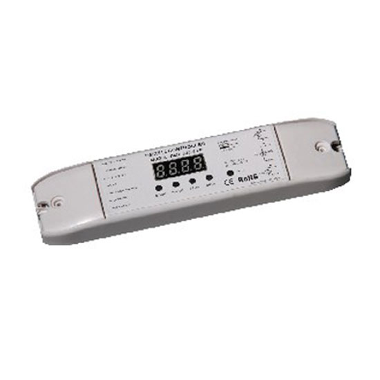 Featured is a DMX512 decoder with LED display. The LED screen is designed for easy programming and showing currently state. The slim appearance design makes it especially suitable for European installation standard.