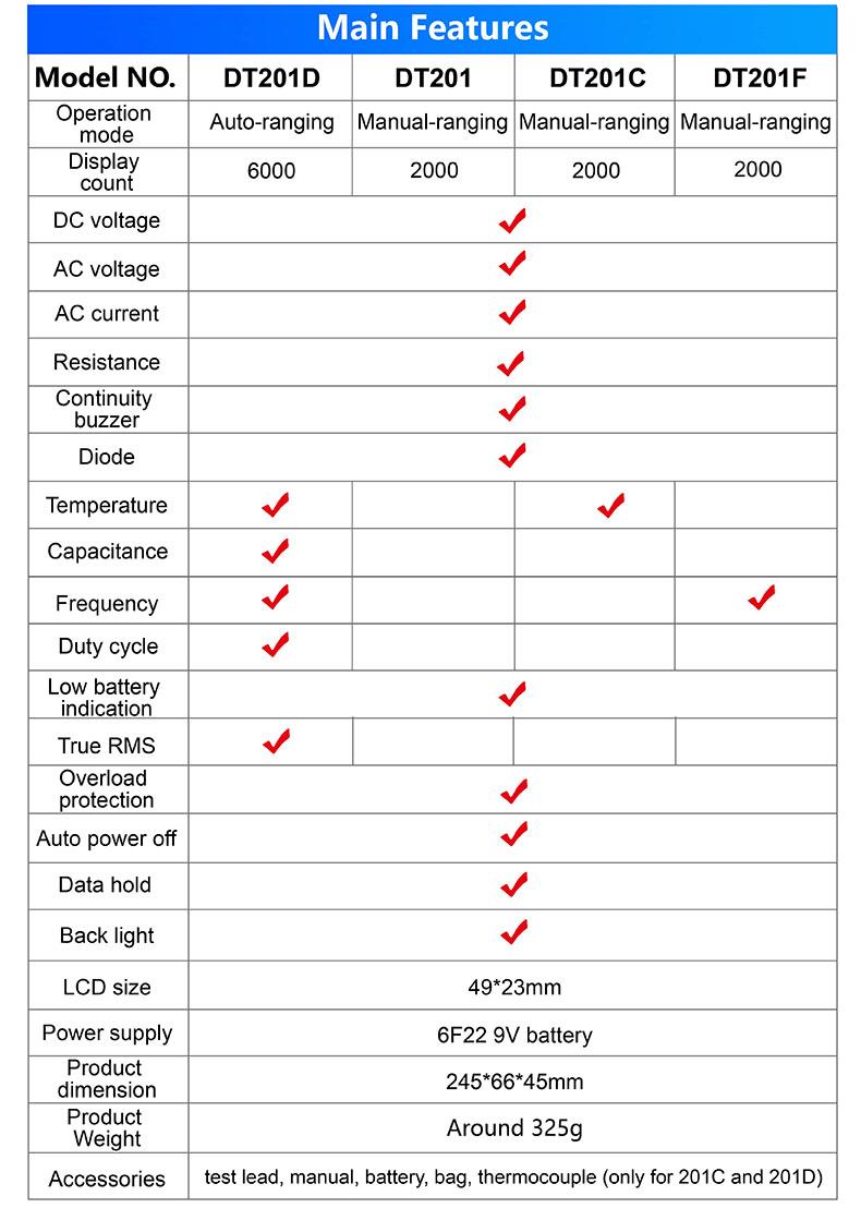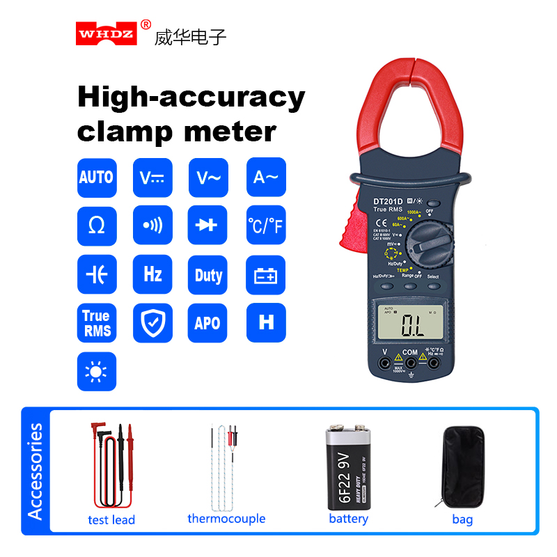 DT201D Clamp Meter 1000A Clamp Ammeter, Frequency Clamp Meter