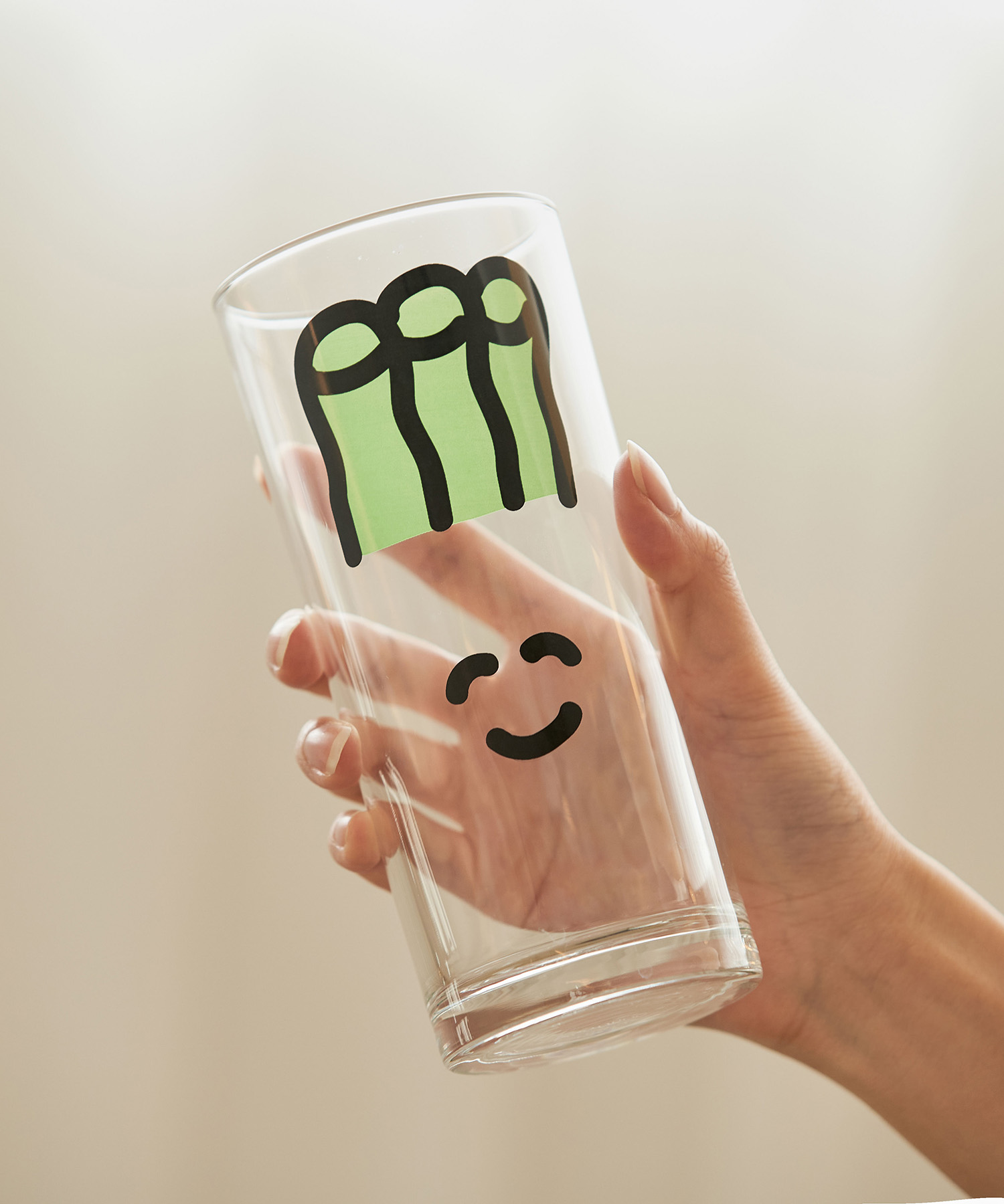 With its clean vertical silhouette and the gentle expression of Daepagoon, this long glass brings a subtle joy to your everyday drink moments.The pure transparency of the glass meets the charm of a minimalist illustration,creating a refreshing accent to any space.Its tall and practical form makes it ideal for serving a variety of beverages -from morning juices to evening coolers. From the start of your day to its quiet close, this glass holds more than just your drink -it holds a sense of calm and comfort, every time.