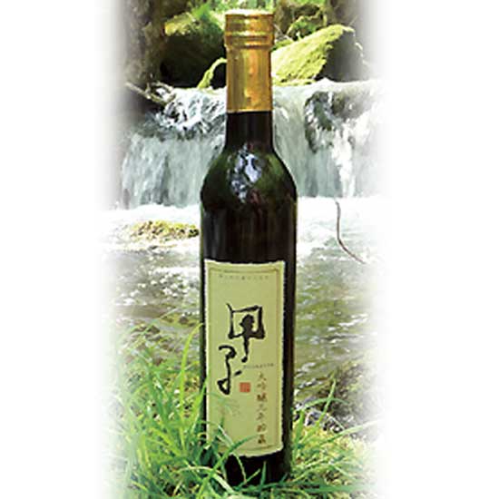 Displayed is a bottle of daiginjo sake that that comes in a tall elegant black bottle. Brewed by professionals, this daiginjo sake is light, fragrant with a pleasant lingering aftertaste. This high quality daiginjo sake is a good choice for gatherings.