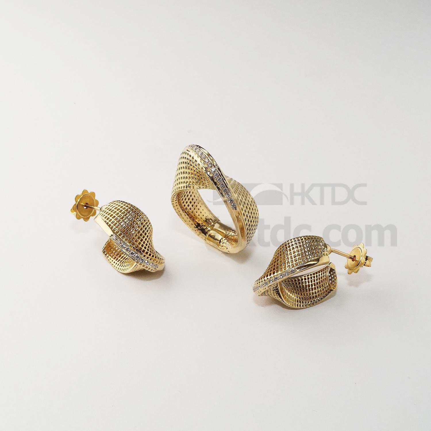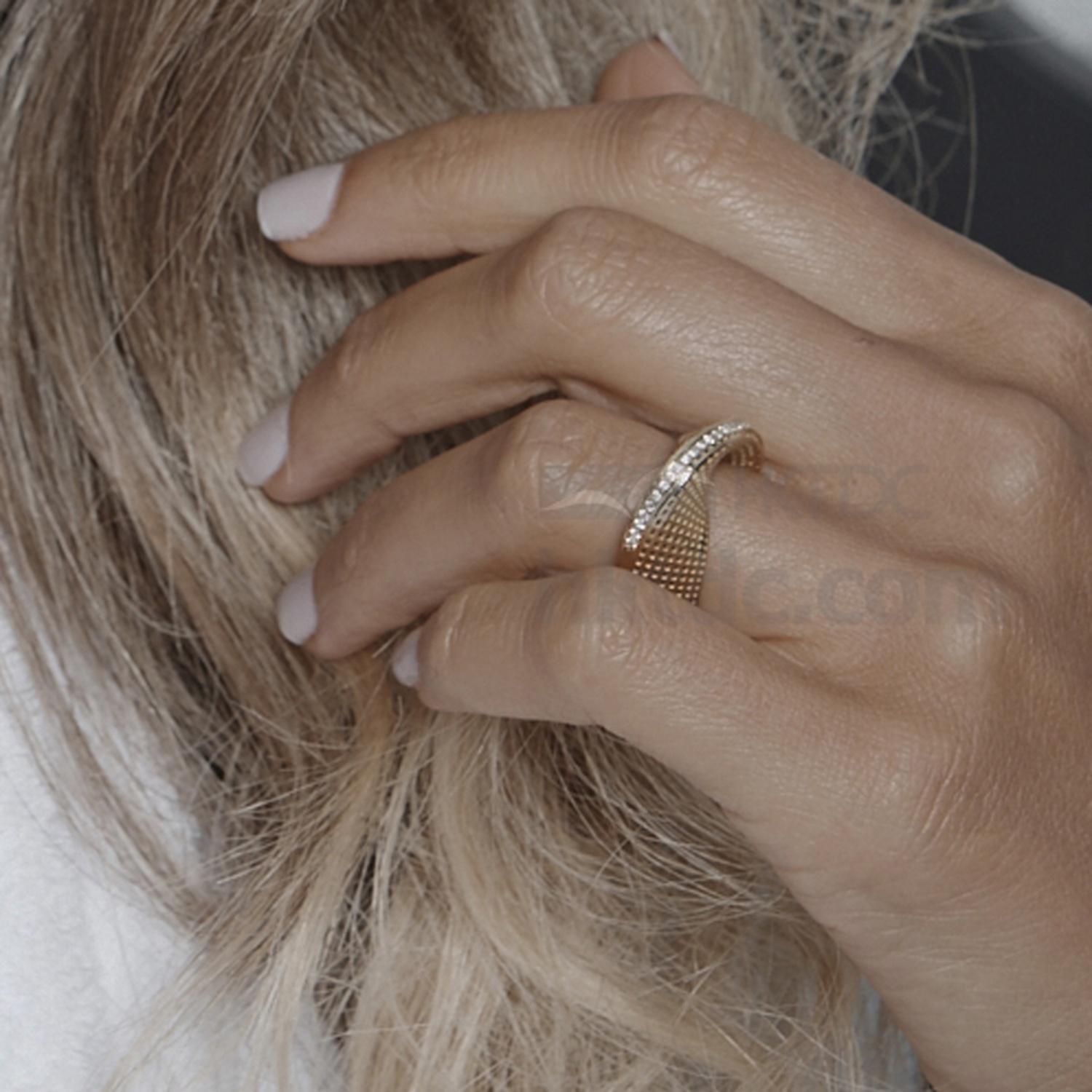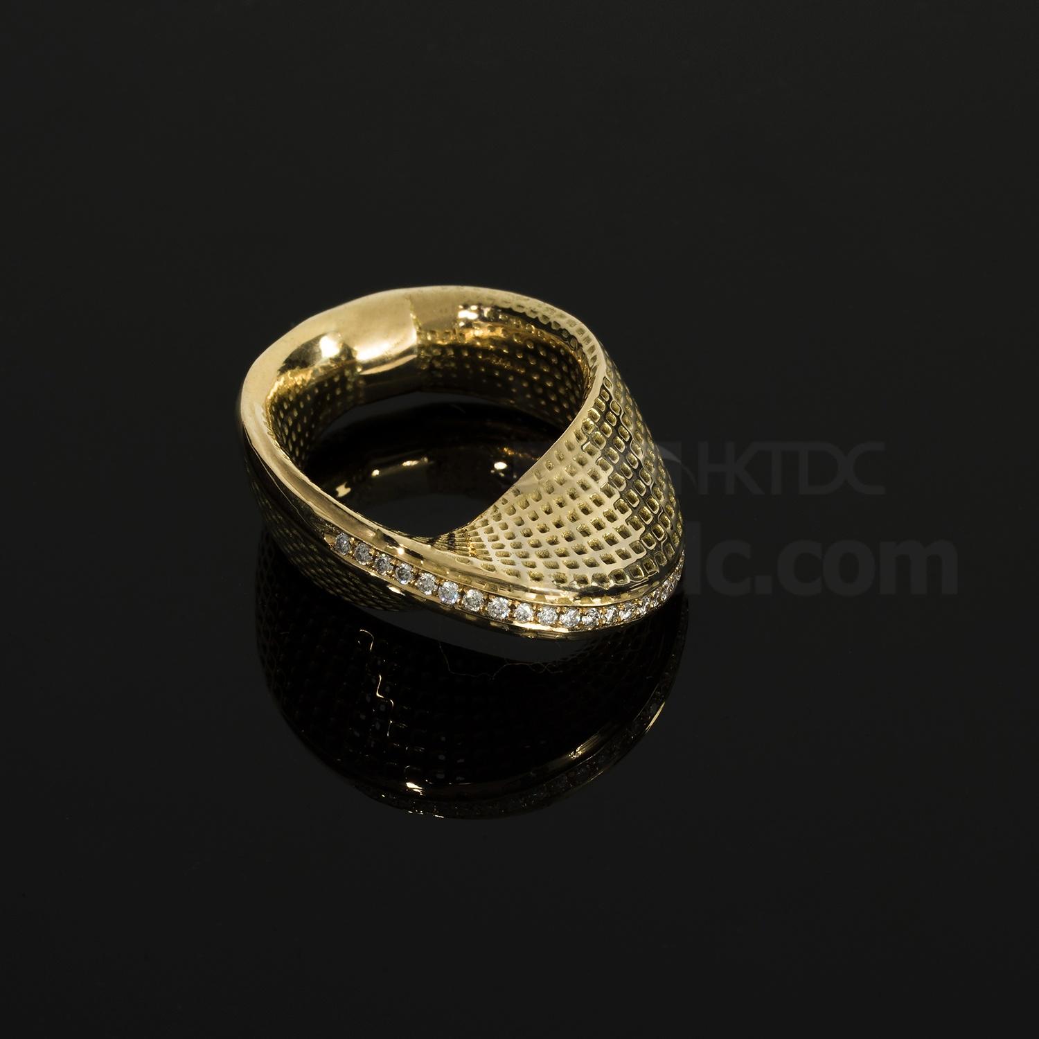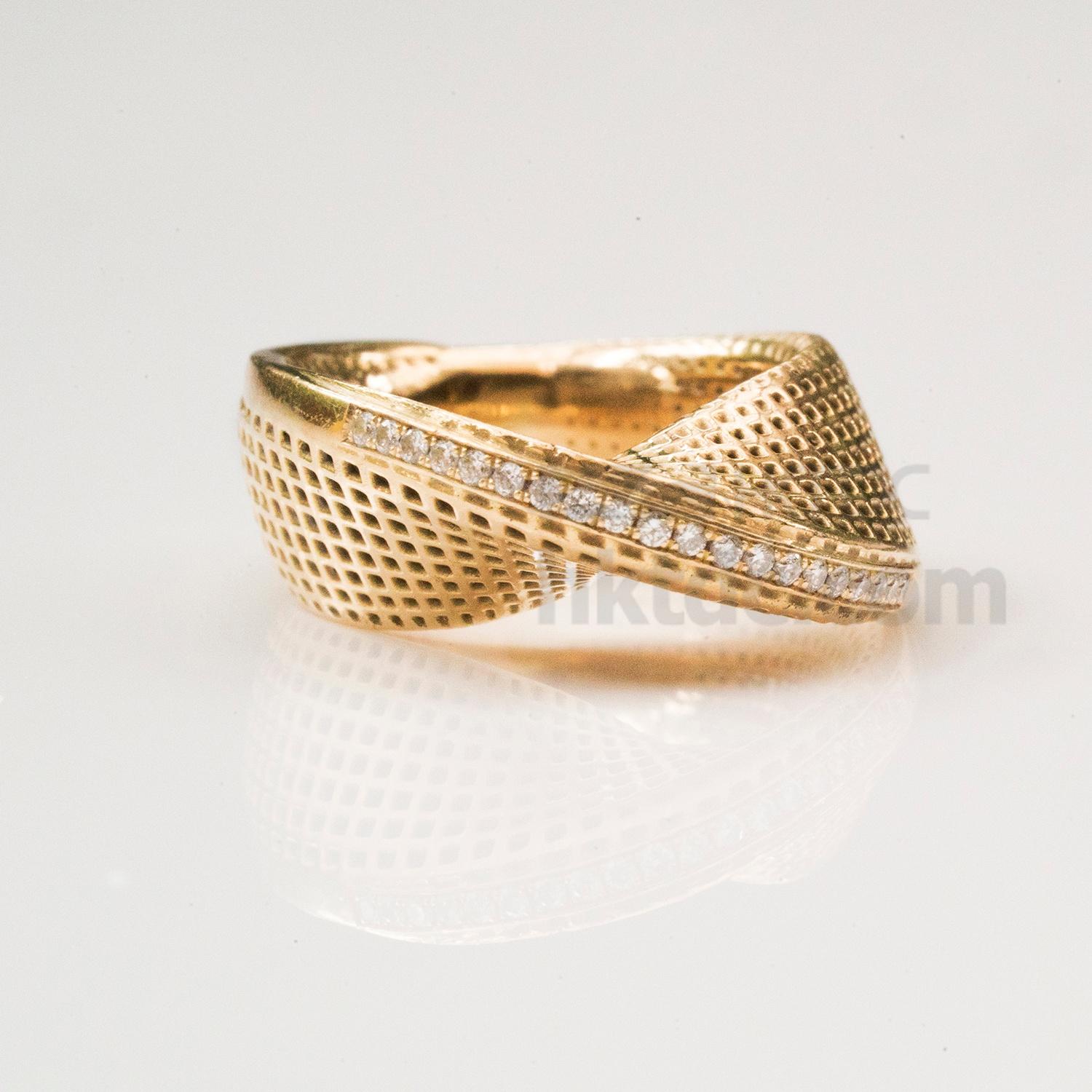 This dainty ring made with 3D printing technique of 18k gold and has a line along the ring setting with 20 diamonds. It design with a net texture.