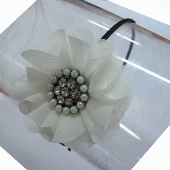 Highlighted here is a simplistic daisy headband designed with layered white petals. Pearls and sparkling stones add extravagance to this accessory. This elegant ornament complements your party dress beautifully.