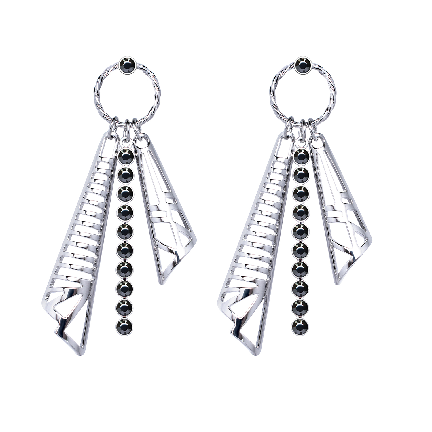 Hit the club with this pair of dangle earrings and a cami top. This pair of earrings screams for attention with its big and bold details. Pierced with a circular ring, they drop into a strand of beads and long sheeny pieces with cut-outs in various shapes. Show-stopping and striking, this pair of earrings will help you grab everyone’s attention when you rock the dance floor.