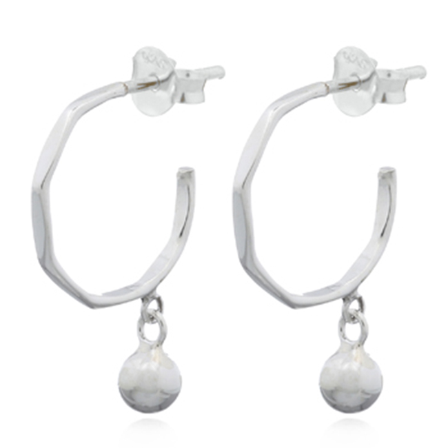 Dangling Sphere In Faceted Curve Silver Stud Earrings