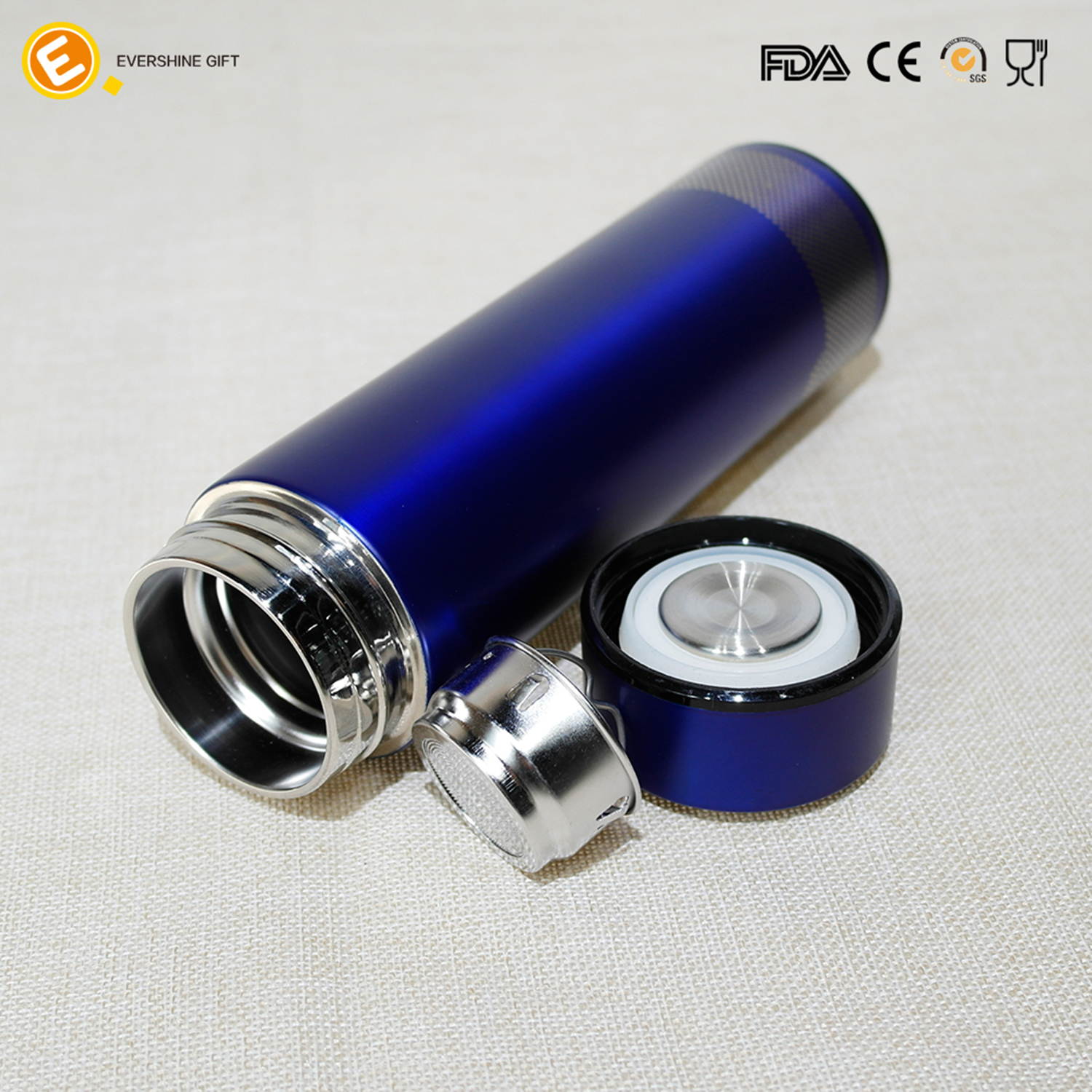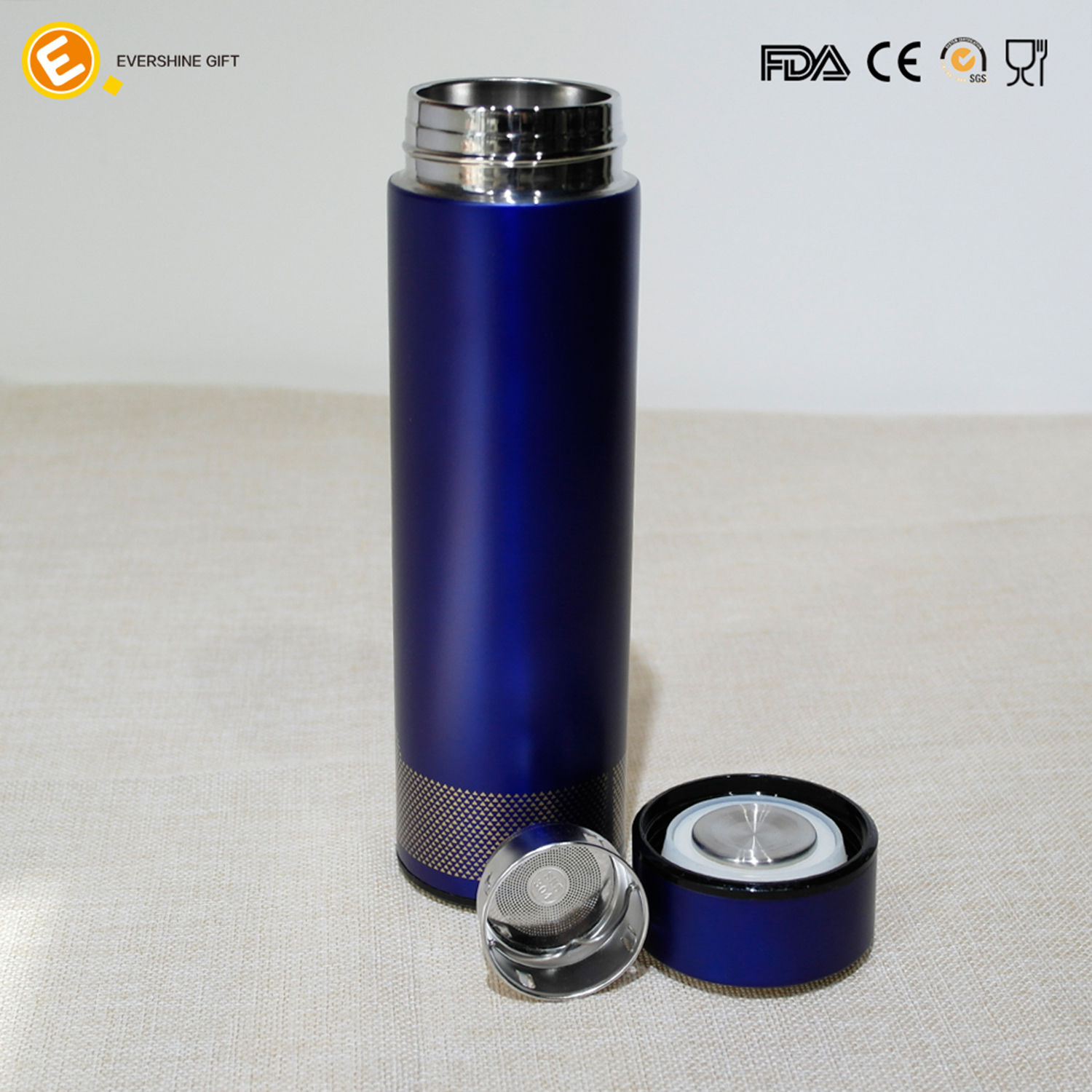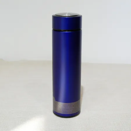Dark blue double wall vacuum stainless steel water bottle with tea filter steel