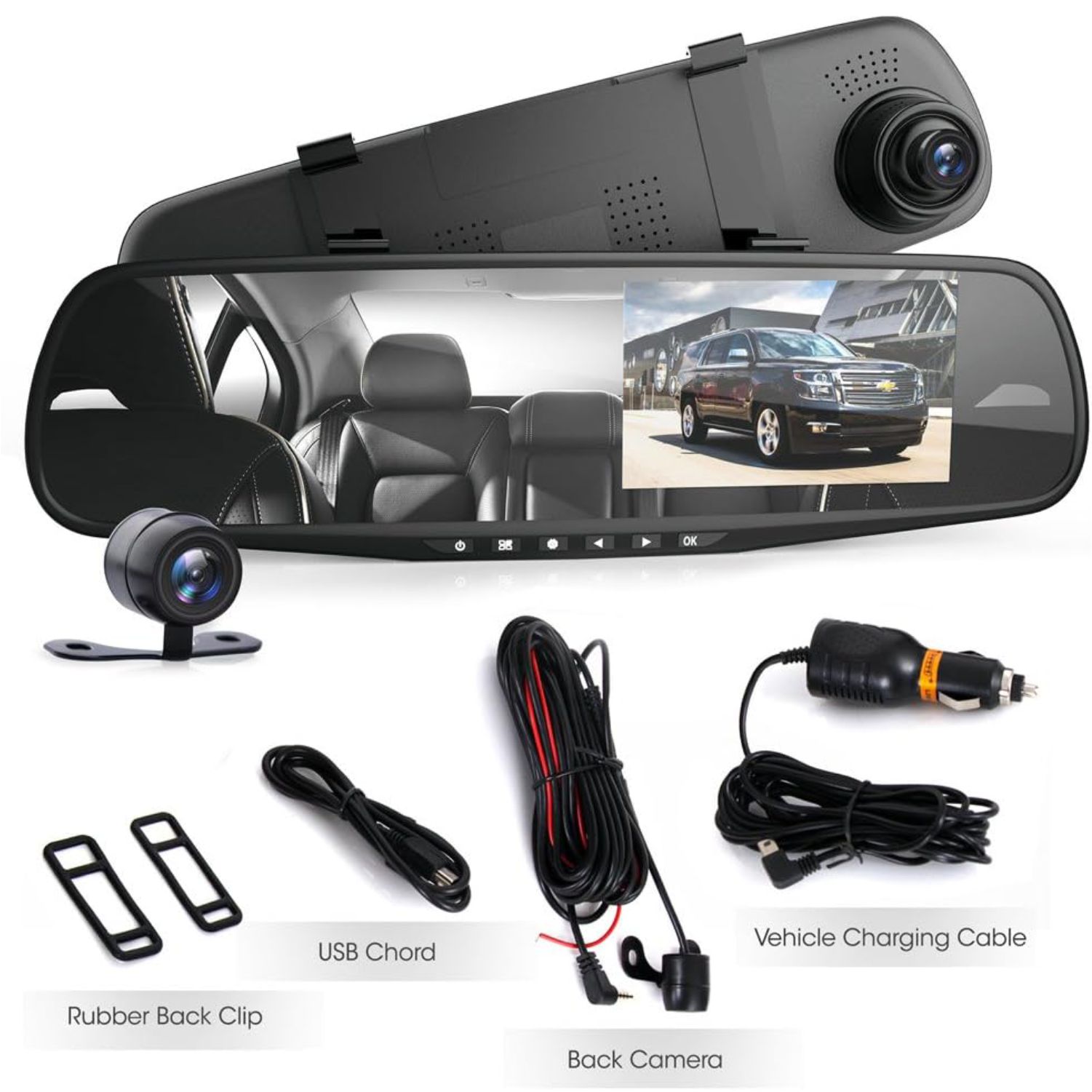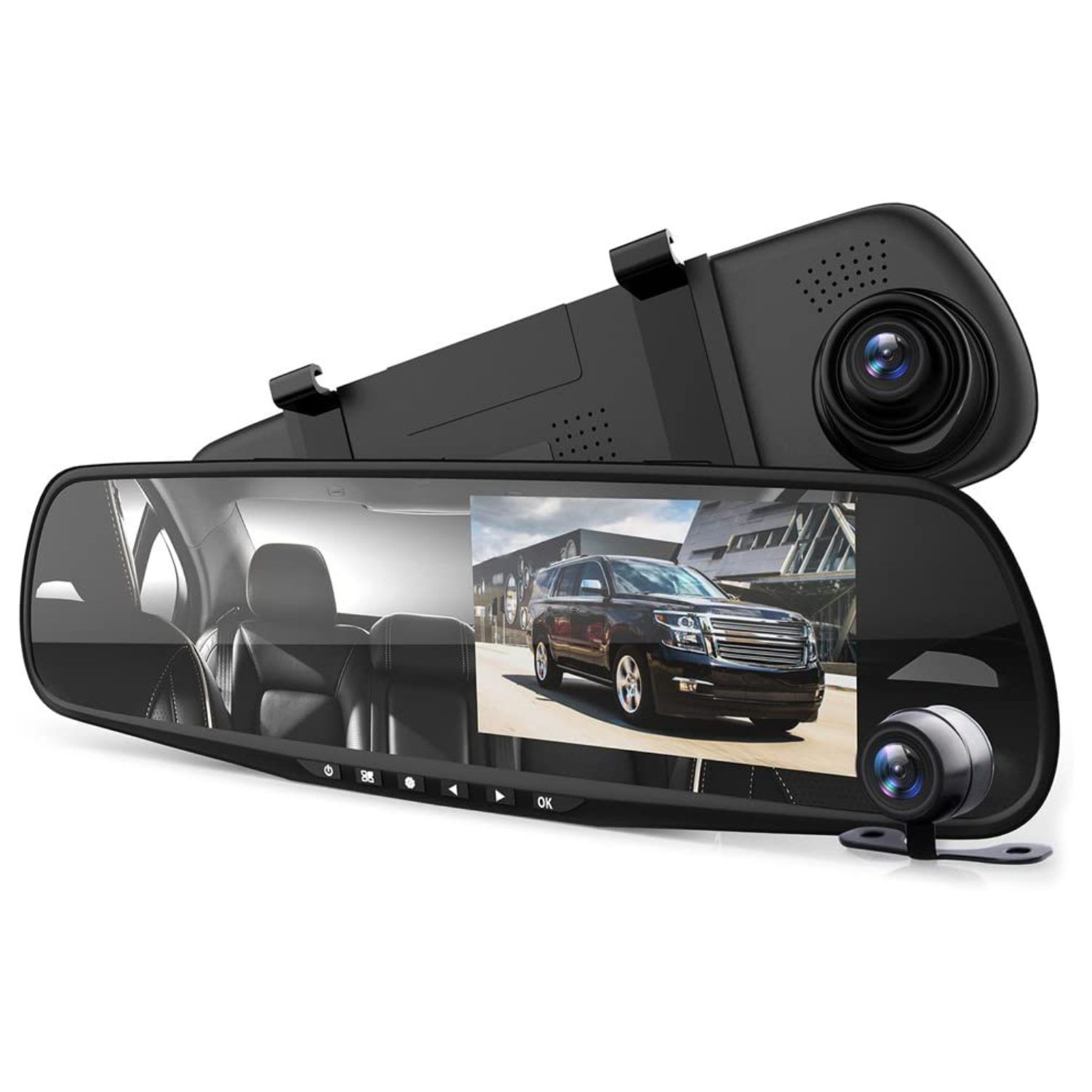 Dash Cam Rearview Mirror - 4.3” DVR Monitor Rear View Dual Camera Video Recording System in Full HD 1080p w