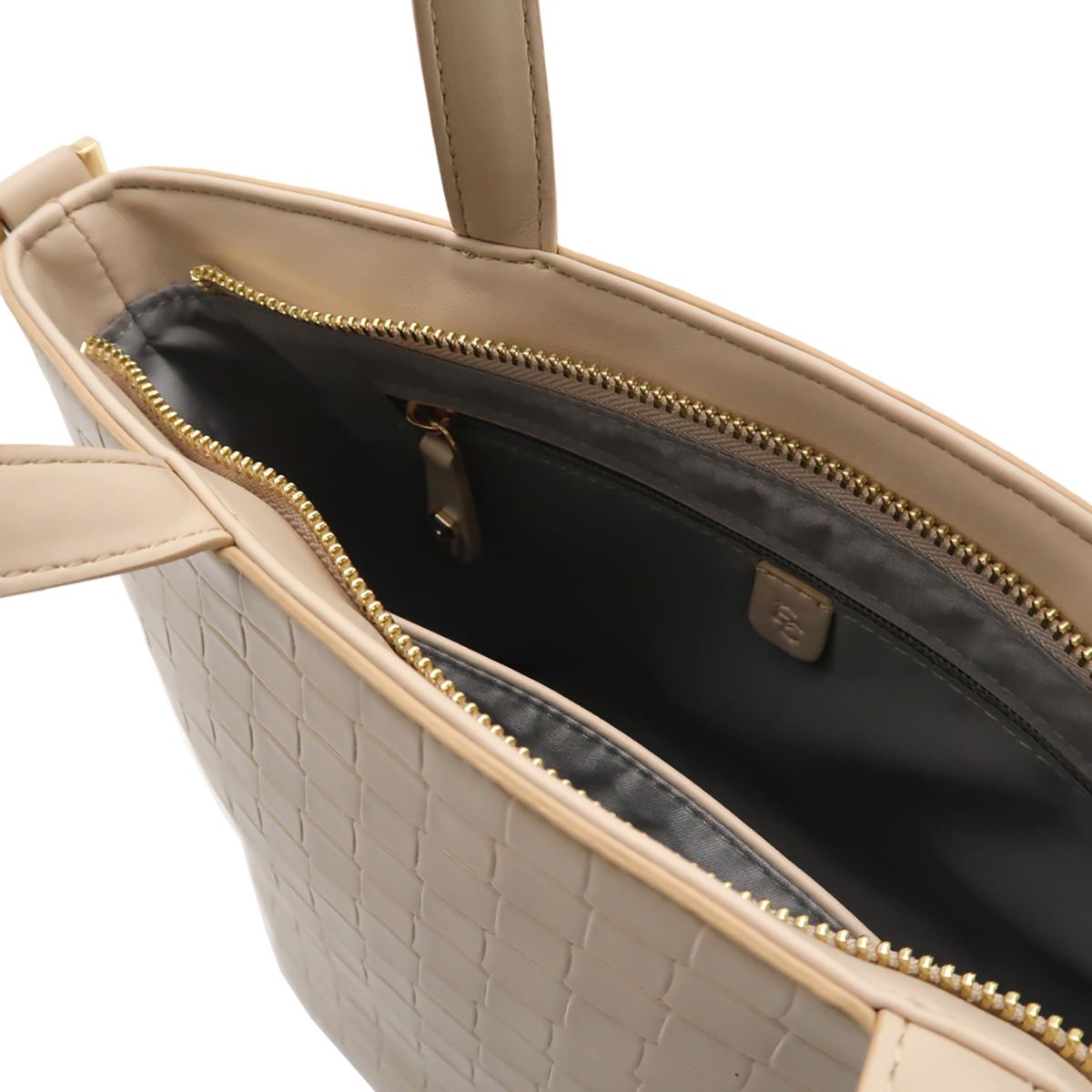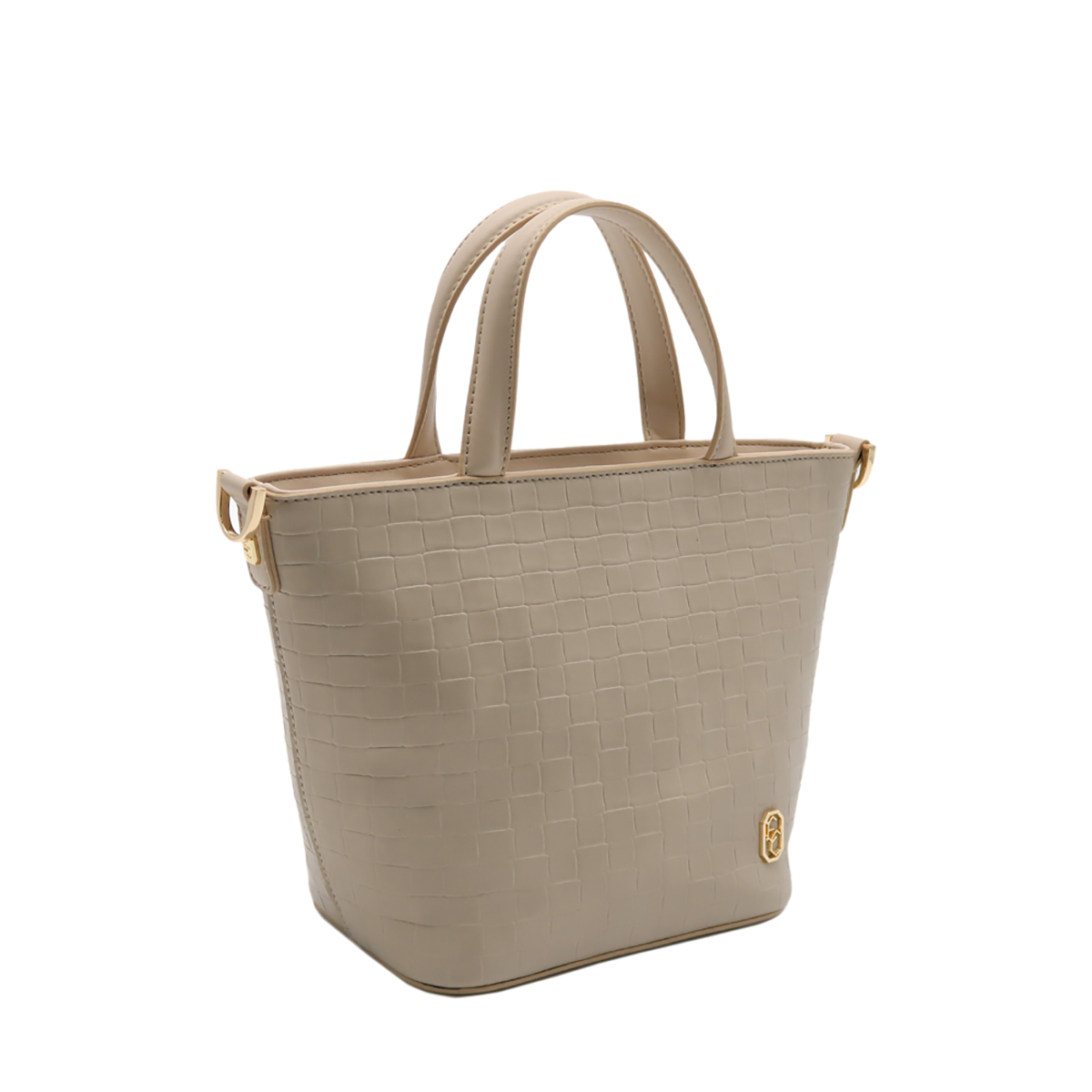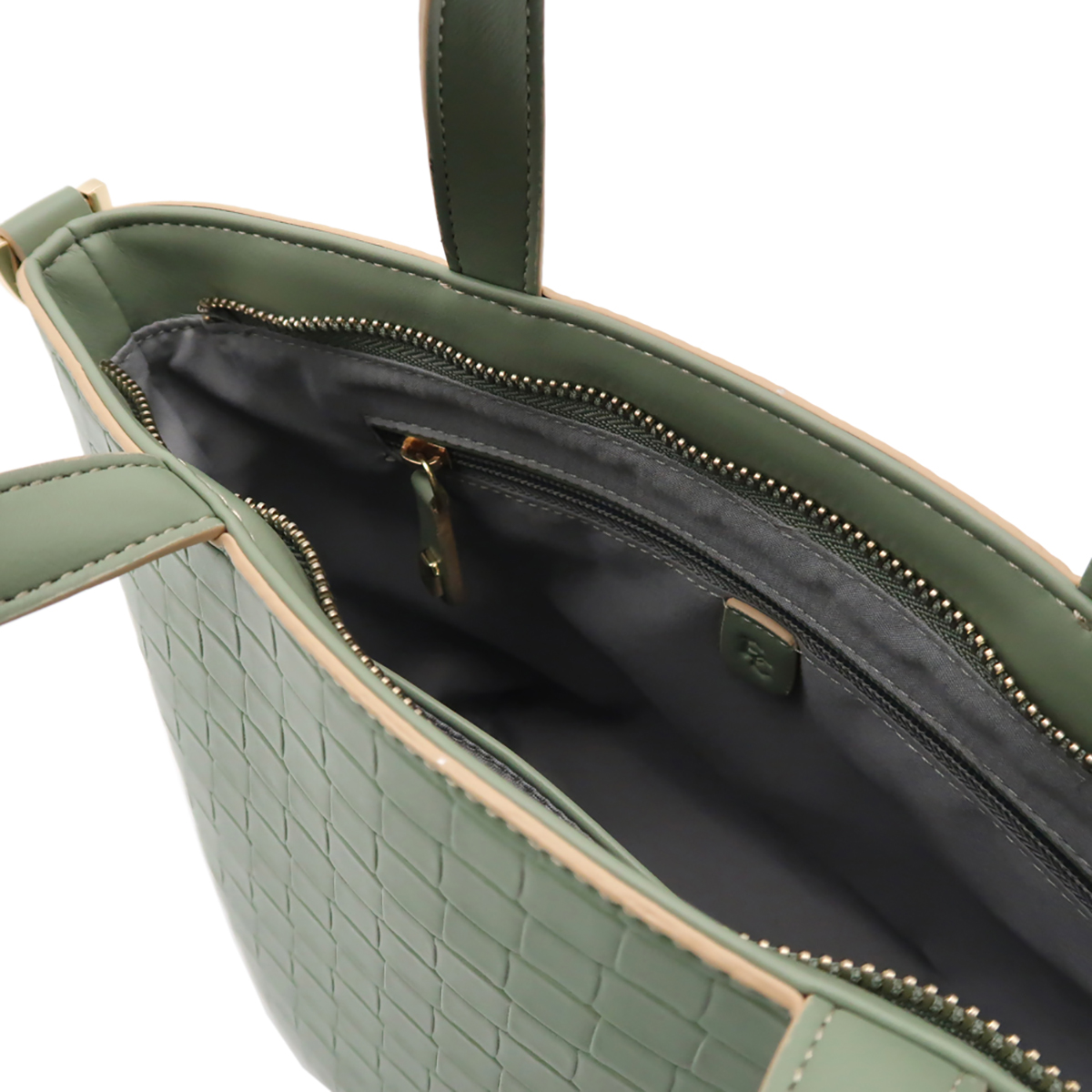 •Basket Weave Embossed Mini tote Bag with twin top handle and zipper closure, stylish and practical bag style.