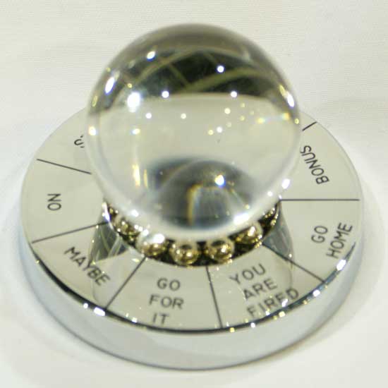 If you often have difficulty making decisions, the featured decision maker decoration is a nice item for you. When you are puzzled, simply trust the decision maker and do what it tells you to do. The decoration is adorned by a crystal ball.
