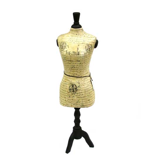 This interesting decoration dummy comes with allover manuscript patterns for an intriguing touch. It is constructed from paper mache to ensure durability. This charming dummy is an ideal decoration choice.