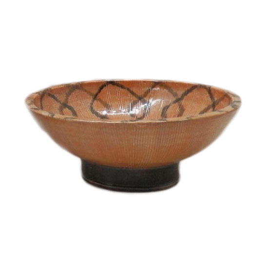 This decorative bowl is finely built with a short round foot. The interior is ornamented with simple patterns for an artistic flair. This good-looking bowl can also be used to hold food for great practicality.
