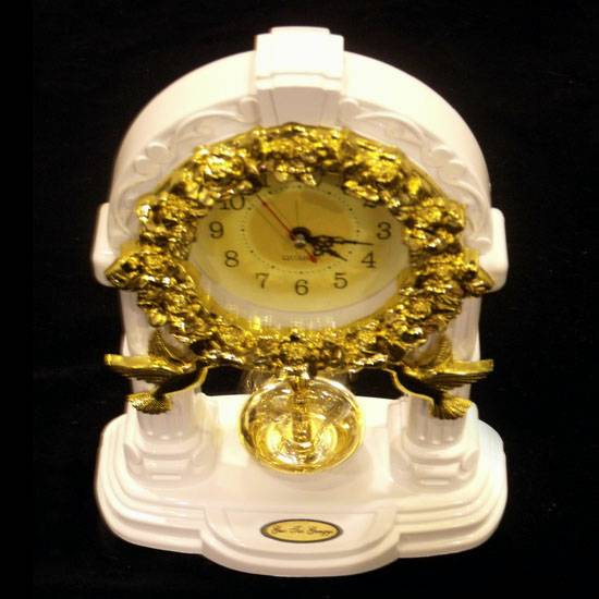 This desktop clock boasts a classic western appearance. The white engraved stand embraces the golden frame for a sense of luxury. This elegant will light up the class of your interior decor.