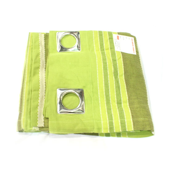 This stylish cotton curtain features a refreshing green color. The beautiful curtain will add a lively touch to any home decor. The functional curtain comes with round holes punched along the top edge and has decorative metal rings around the hole perimeters.