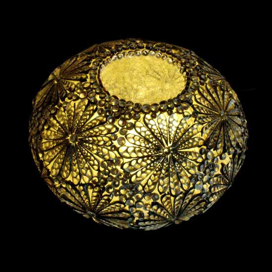 This globe table lamp is made with a natural shell crafted with aesthetic floral details. It diffuses warm and harmonious illumination to the ambiance. This unique and stunning shell lamp makes an impressive decoration for your home.