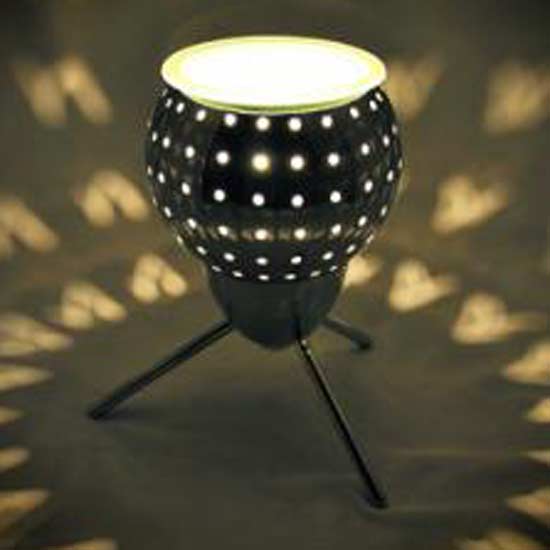 This decorative LED lamp features a pot-shaped body with a tripod base for a stylish look. The light passes through the holes to create an enchanting lighting effect. Add flair to your room with this decorative table lamp.