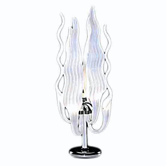 This decorative lamp boasts a fire-like design in white color. It comes with a silvery lamp base, which showcases a touch of sophistication. Add a touch of elegance to your indoor decor with this gorgeous lamp.