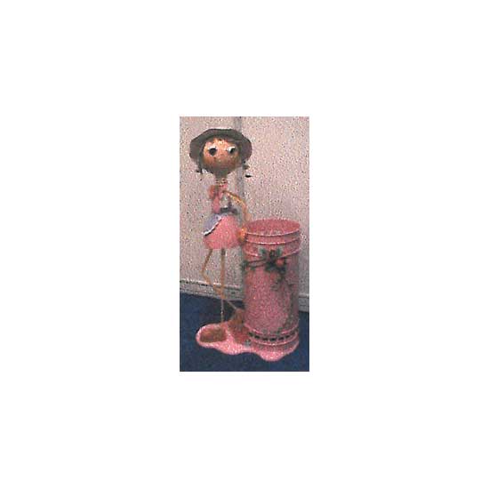 This decorative rubbish bin features a lovely female doll. The cylindrical body is adorned with floral decorations, showcasing a beautiful design. This rubbish bin is decorative and pragmatic.