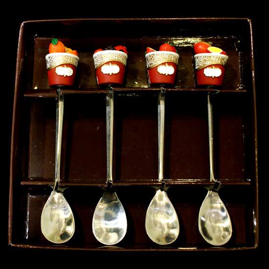 Highlighted is a beautiful spoon set that is made of metal material. This excellent spoon set includes four spoons, each adorned with a stylish figure in distinctive designs. Simply add this set to your dining table for a touch of uniqueness.