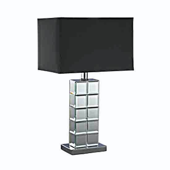 The decorative table light boasts a rectangular black fabric shade and an exceptional base made up of mirror-finish glass cubes. The light passes through the black shade to allow mild illumination in an indoor environment. Dress up your room in style with this decorative table lamp.