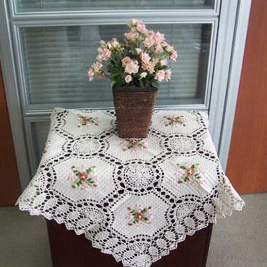 The decorative tablecloth is meticulously crafted with dainty and appealing cutouts. It is ornamented with well-colored and elegant floral patterns. This piece makes a tasteful match to many tabletop items.
