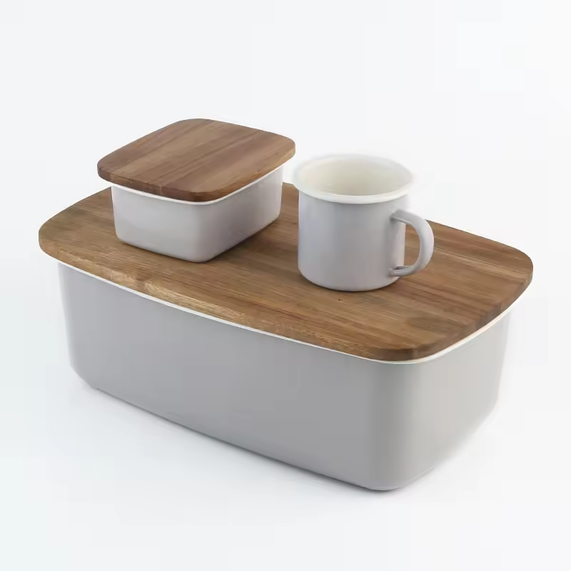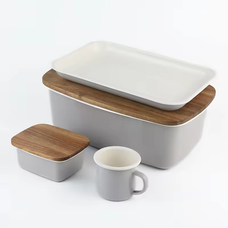 The product is made od enamel material+wood,which is healthy and environent protection.