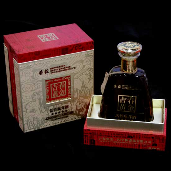 This deer antler wine is brewed from fresh antler, deer penis, deer blood, deer tail collected from fielded stocking sika deer in Siping Species of Deer Co., Ltd. Many natural nutrients and valuable nourishing medicine are added to the wine with reference to the ancient palace formula.