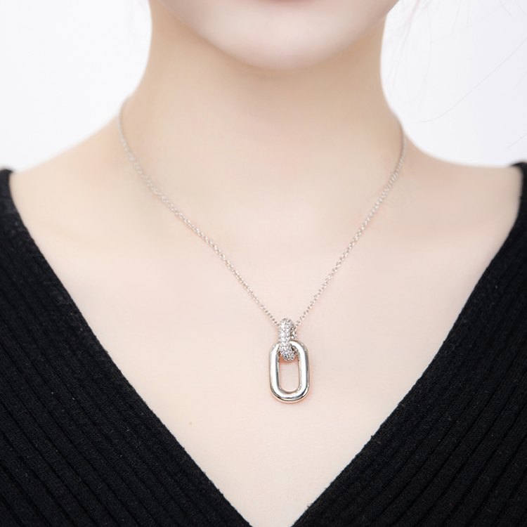 Delicate Classic Square CZ Round Charms Brass Pendant Necklace Women's Jewelry