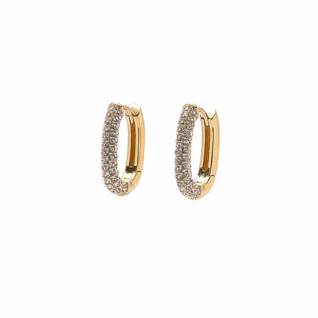 Delicate Fashion Women Hoop Earrings 23K Gold Micro Pave CZ Stone Wide Dome Chunky Hoop Earring