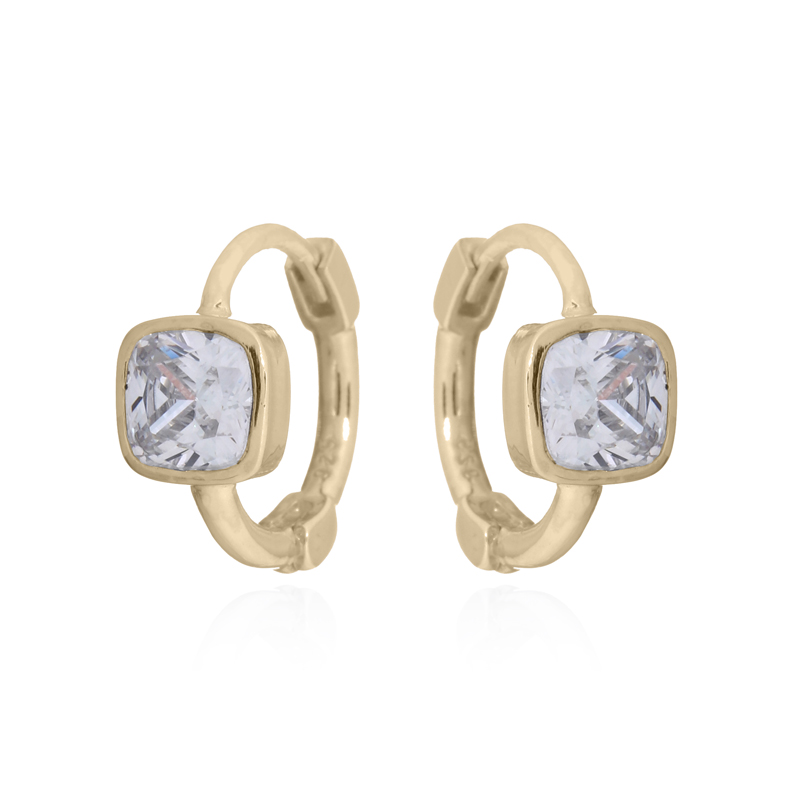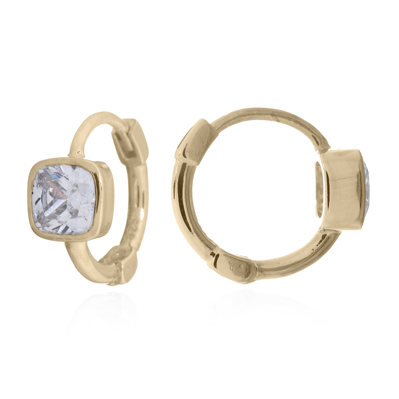 Delicate Square-Cut CZ Sterling Silver Hoops