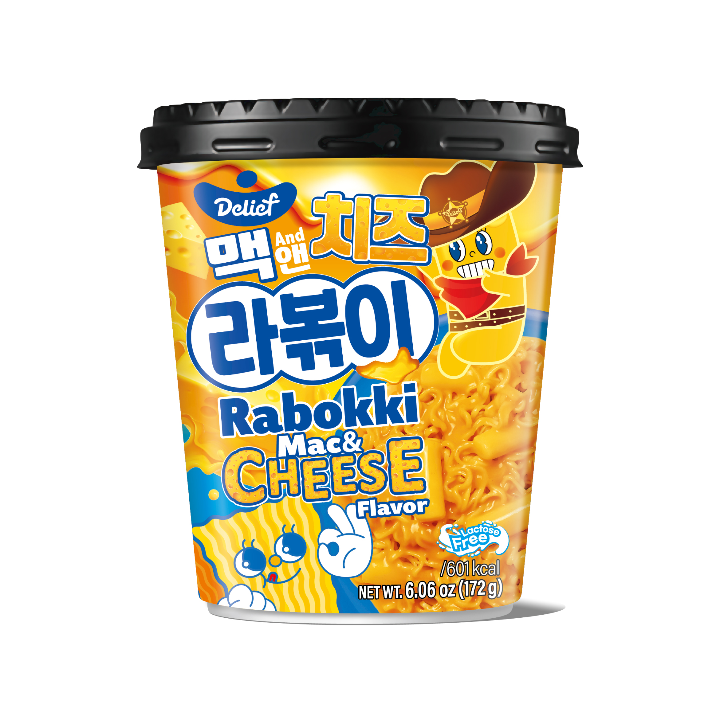 Delief Mac & Cheese Rabokki combines chewy rice cakes and noodles in one dish, making it a satisfying meal. Its savory cheese aroma adds a deliciously comforting touch