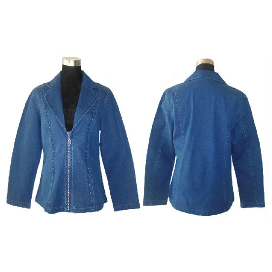 This denim jacket is clean and classic, featuring delicate handwork and computerized embroidery. The jacket is finished with a front zippered closure and a down collar. This piece is decorated with crystal ornaments which offer infinite creativity.