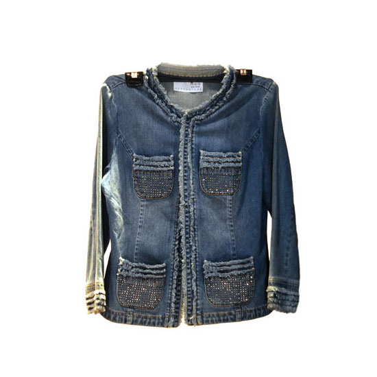 This is a stylish denim jacket for fashionable ladies. It features long sleeves, a round neck and four pockets. This ladies’ jacket is finely made for maximum wearing comfort.