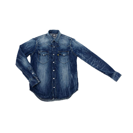 This denim shirt in a river blue color flaunts a Western style. Using 12oz of 100% Zimbabwe cotton, this denim shirt is so comfortable that you can wear it in four seasons. The washing process done by Japanese craftsmen also makes it look unique and eye-catching.
